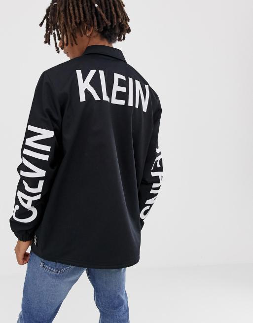 Calvin klein institutional clearance logo coach jacket, Calvin Klein Jeans monologo badge relaxed fit overshirt in black clearance