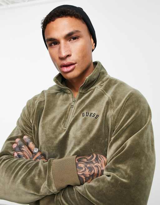 Guess sherpa clearance, Guess sherpa textured half zip in green with logo clearance