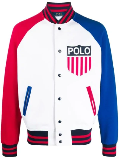 Red white and clearance blue polo jacket, Panelled Bomber Jacket In White clearance