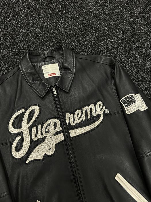 Supreme uptown studded clearance leather jacket, Supreme uptown studded leather varsity jacket by akstyle s clearance