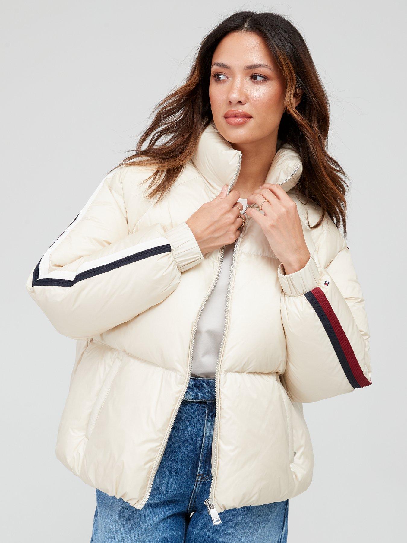 Tommy hilfiger padded clearance down jacket women's, Stripe Sleeve Modern Padded Down Jacket Beige clearance