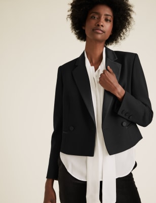 Double Breasted Cropped Tuxedo Jacket M S Collection M S