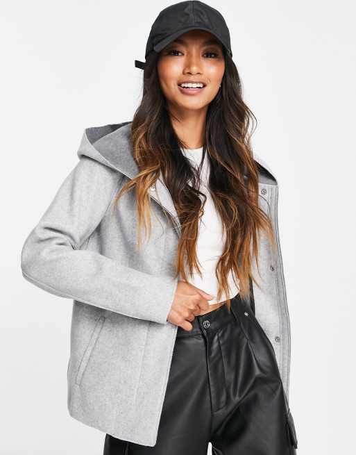 Only Siri bonded hooded minimal short length jacket in light grey melange