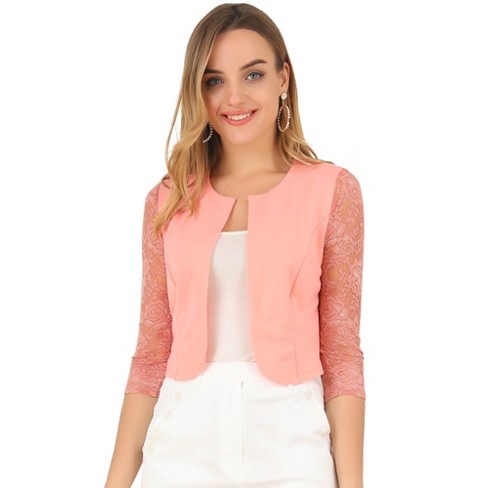 Bolero clearance jacket target, Allegra K Women s Elegant 3 4 Sleeve Sheer Floral Lace Cropped clearance