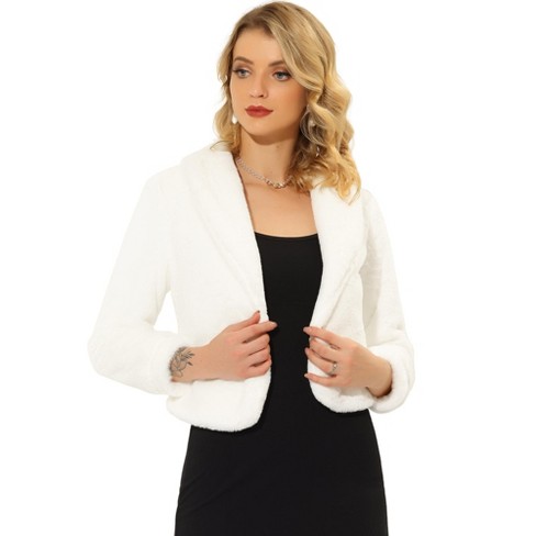 Fuzzy clearance jacket target, Allegra K Women s Cropped Lapel Long Sleeve Fluffy Faux Fur clearance
