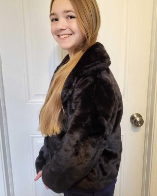 Target black fur clearance jacket, Allegra K Women s Winter Warm Cropped Collarless Faux Fur Fluffy clearance