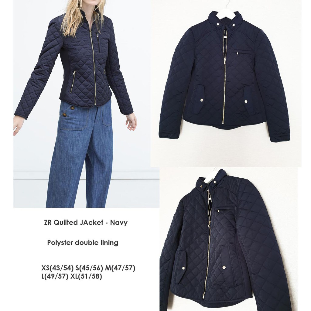 Zara Woman Jaket Quilted Navy Ivory Jacket Biru Tua Putih