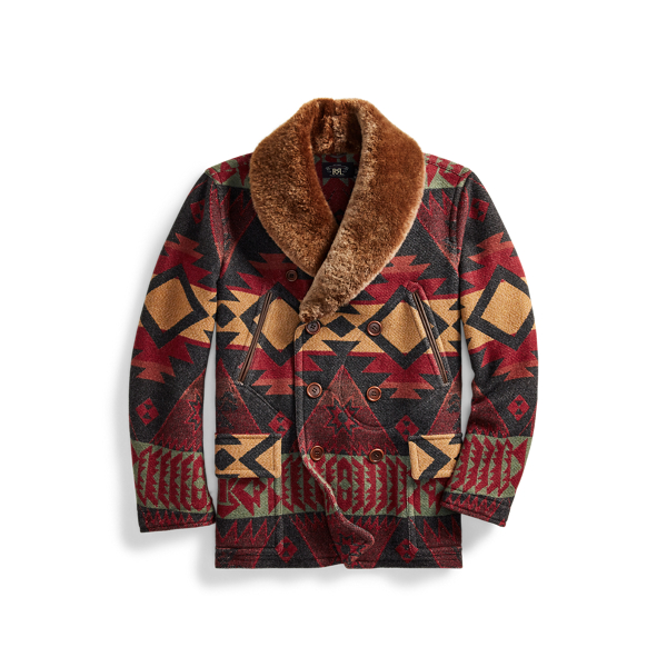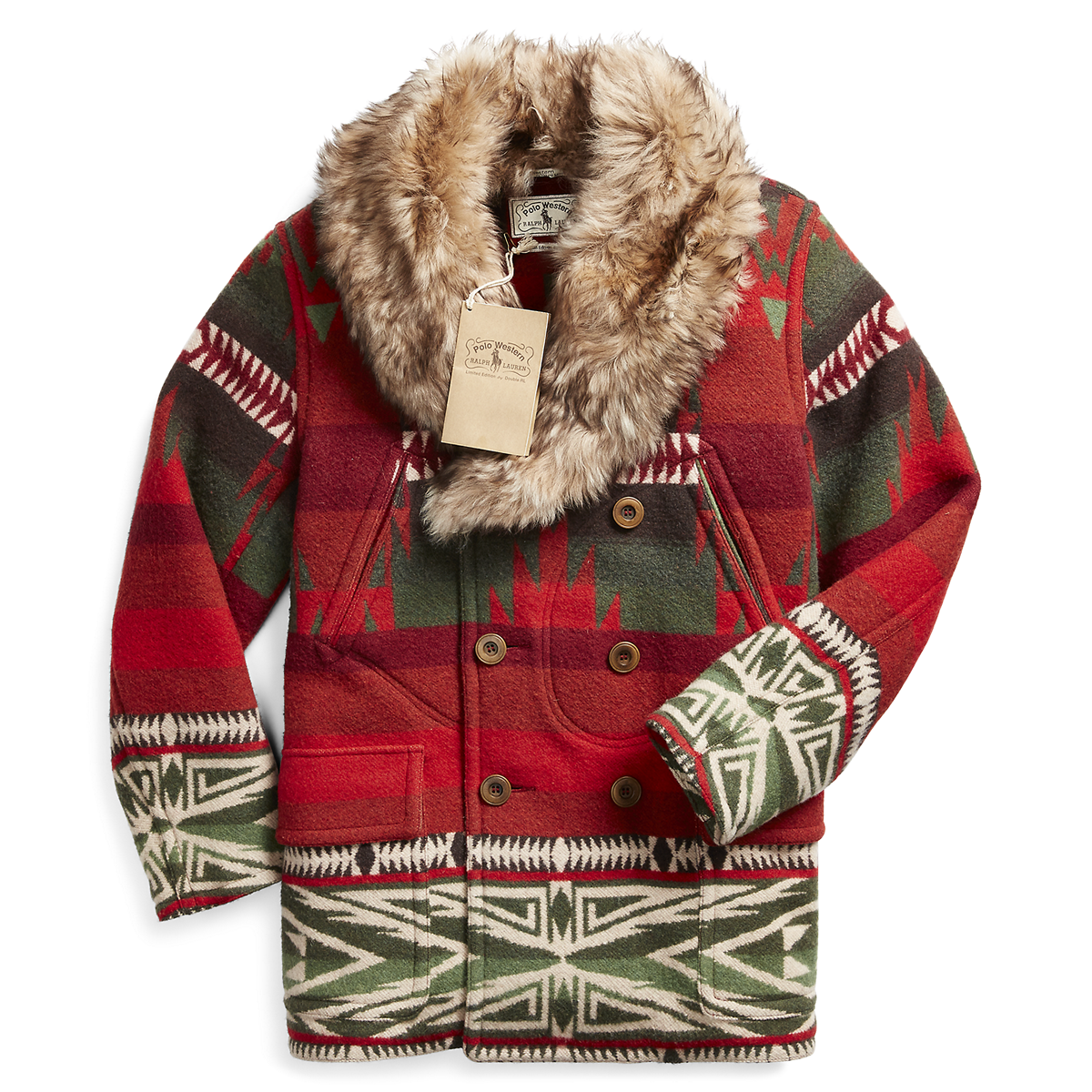 Polo Ralph Lauren belted double breasted wool ranch coat w Aztec motif sz XL