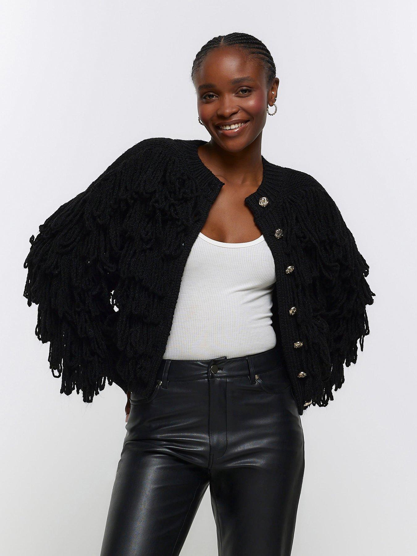 River island tassel clearance jacket, River Island Fringed Detail Cardigan Black very clearance