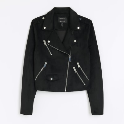 River island black clearance suede jacket, Black suedette crop biker jacket River Island clearance