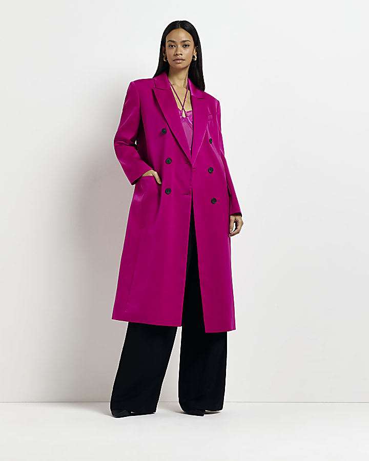River Island Oversized Double Breasted Longline Coat in Pink Lyst