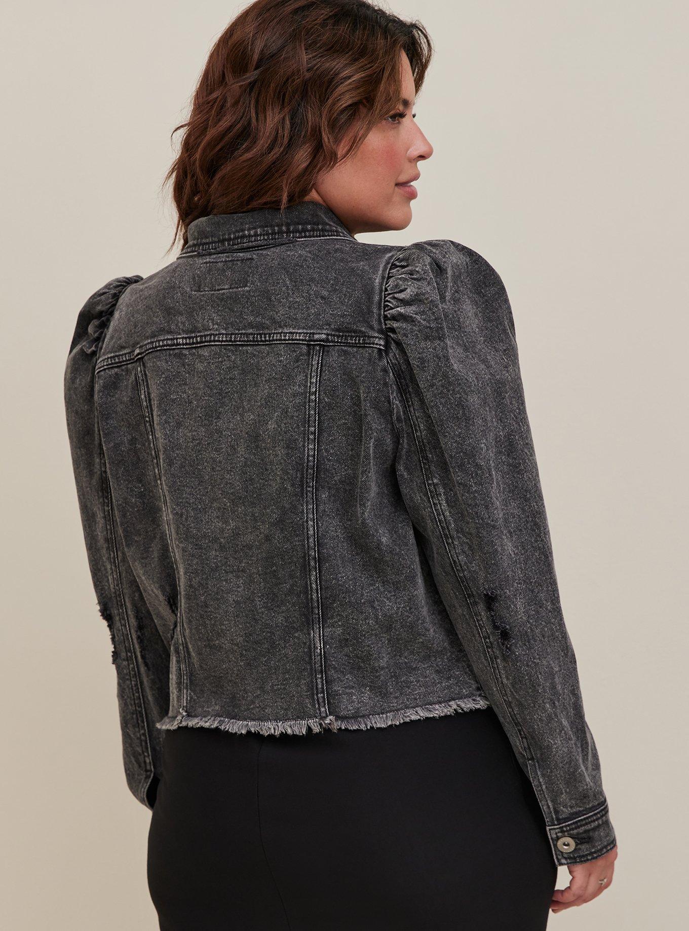 Black puff sleeve clearance jean jacket, Plus Size Trucker Puff Sleeve Jacket Denim Black Torrid clearance