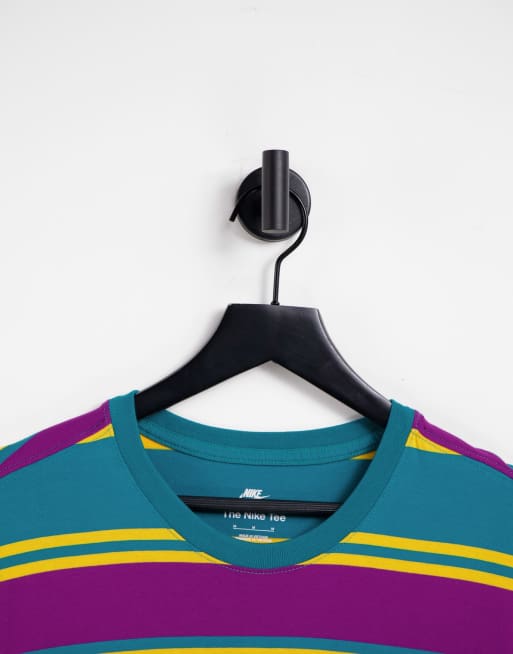 Purple and turquoise clearance nike shirt, Nike Essential Stripe t shirt in teal purple ASOS clearance
