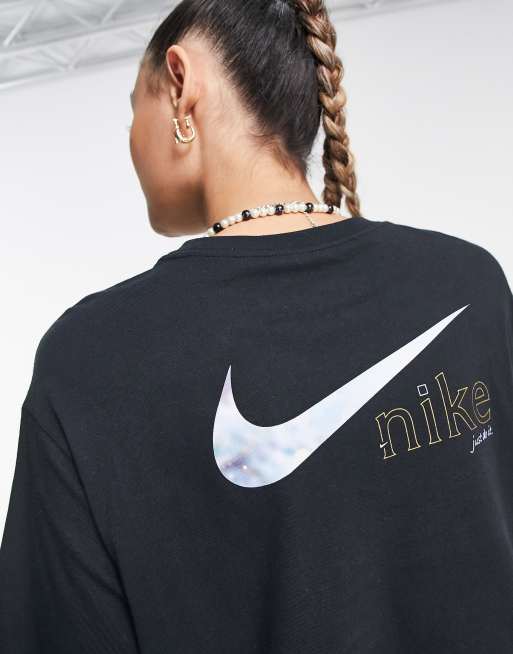 Nike metallic foil graphic swoosh back print boyfriend t shirt in black