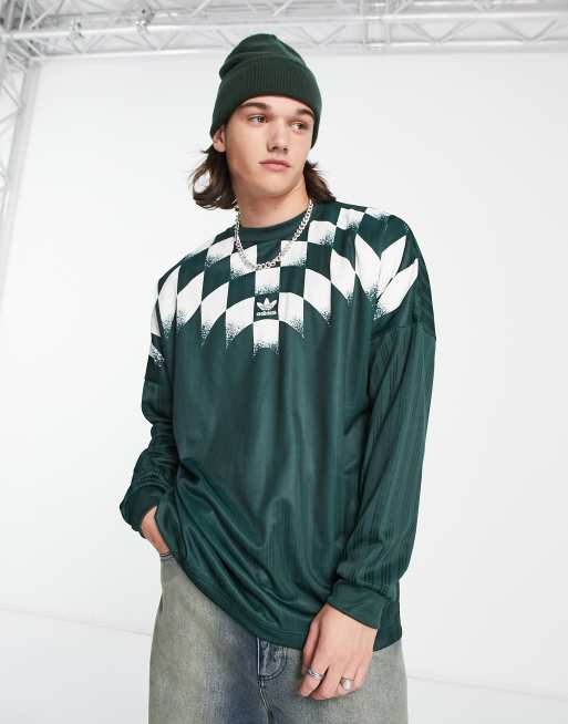 Adidas originals long sleeve t clearance shirt green, adidas Originals Rekive long sleeve check print t shirt in dark green clearance