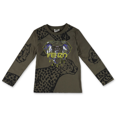 Kenzo Kids Military Green T shirt For Boy With Elephant ModeSens