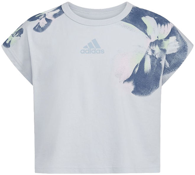 adidas Kids Short Sleeve Loose Box Tee Shirt for Big Kids Graphic Print and Ribbed Crew Neckline