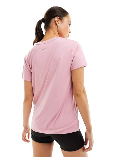Nike Running Dri FIT Swoosh t shirt in pale pink