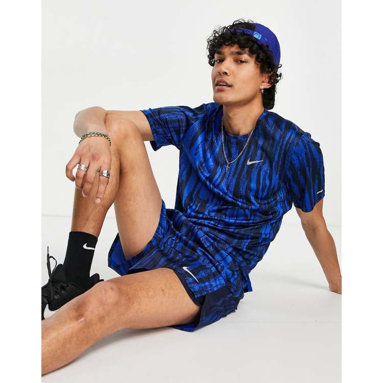 Nike Running Wild Run printed Miler t shirt in blue ASOS