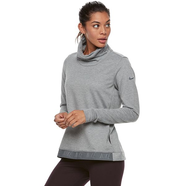 NIKE WOMENS DRY COWL NECK TRAINING TOP Gray Sweater Size S eBay