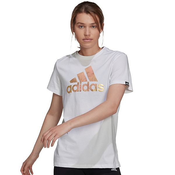 Women s Adidas Foil Motion Graphic Tee White Pink Gold Metalic Size M
