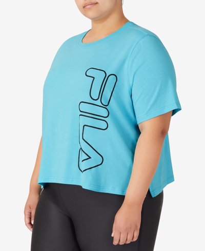 Fila Big Logo Plus Size Thea T Shirt Women s 2X Iced Aqua Crewneck Pullover S S