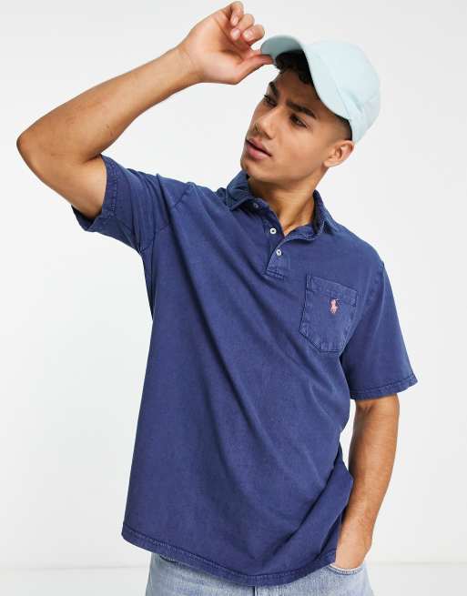 Polo Ralph Lauren pony logo pocket cotton linen polo in navy