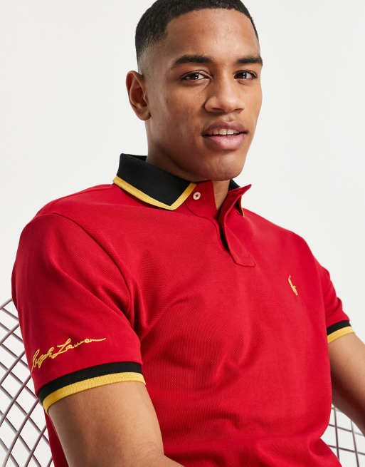 Polo Ralph Lauren gold icon tipped pique polo custom fit in red