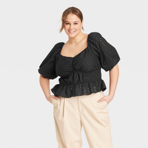 Women s Puff Elbow Sleeve Eyelet Shirt A New Day Target