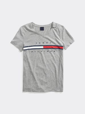 Tommy Hilfiger Organic Cotton Signature Tape Logo T Shirt Gray