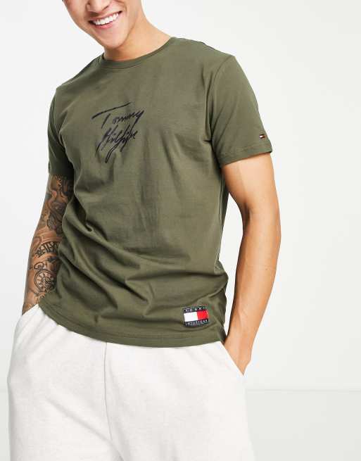 Tommy Hilfiger lounge logo script t shirt in khaki