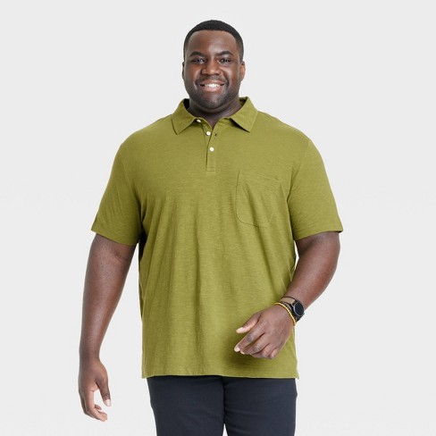 Men s Big Tall Regular Fit Short Sleeve Slub Jersey Polo Shirt Goodfellow Co Olive Green XLT