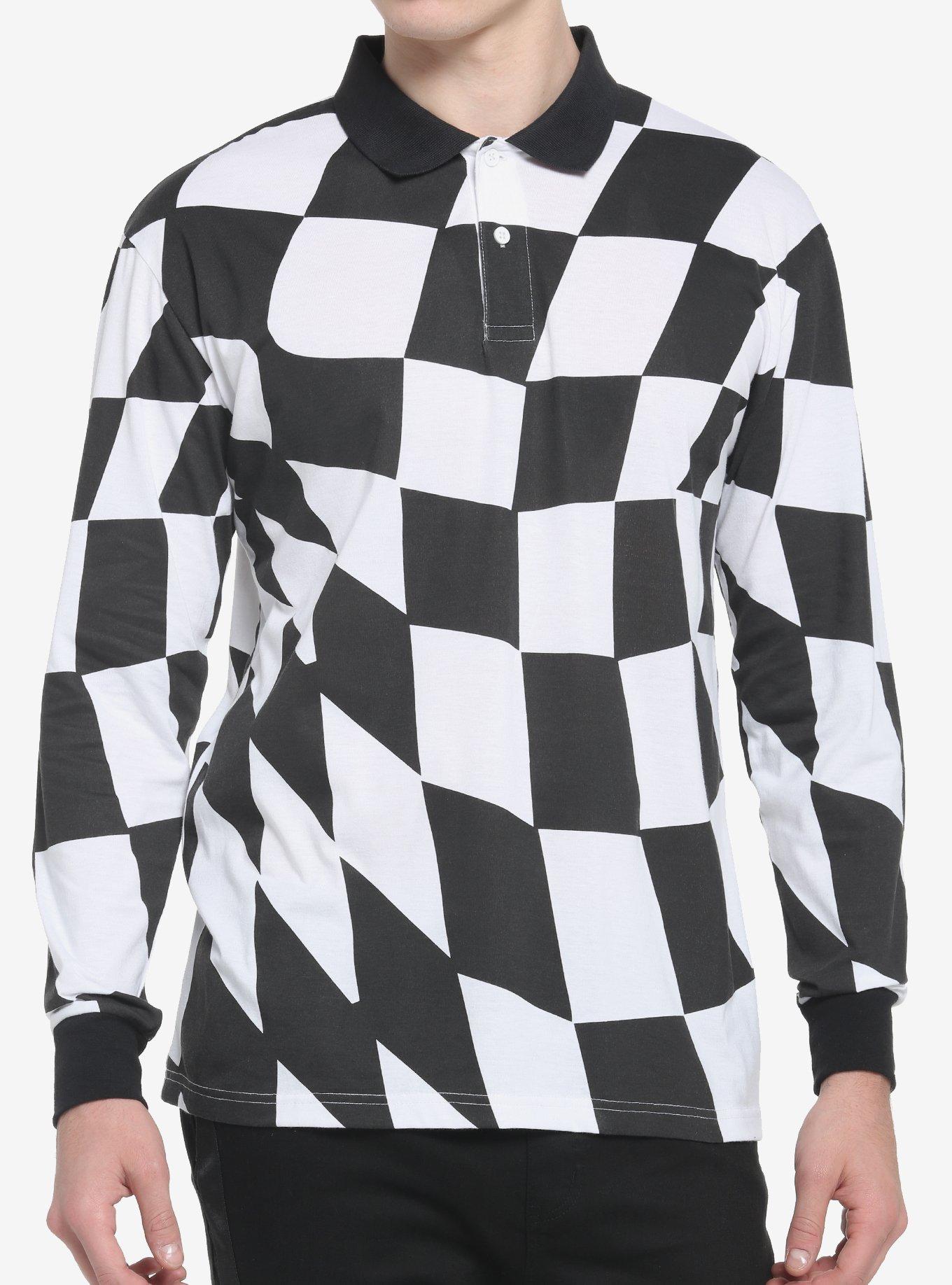 Black White Checkered Long Sleeve Polo Shirt Hot Topic