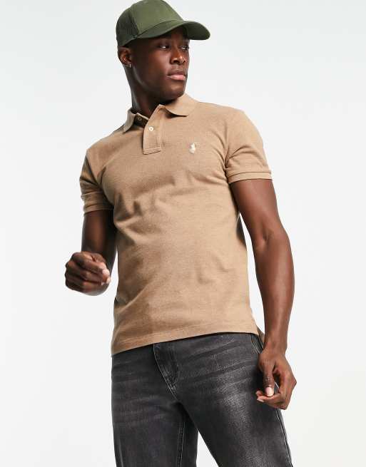 Polo Ralph Lauren icon logo slim fit pique polo in brown heather