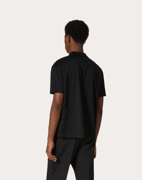 Mercerised Cotton Polo Shirt With Flower Embroidery for Man in