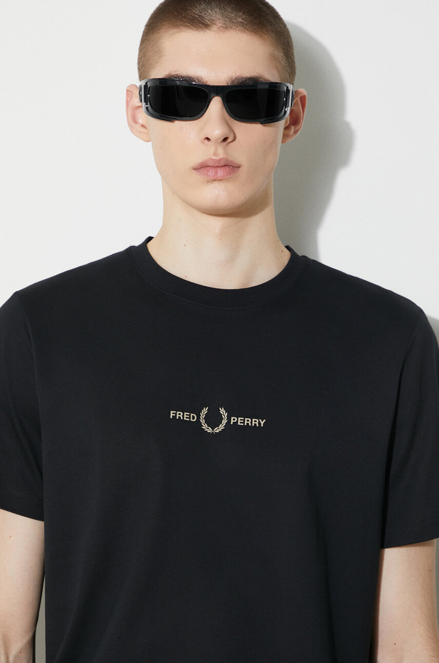 Fred Perry cotton t shirt Graphic Print T Shirt men s black color