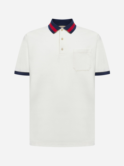 Cotton piquet polo with Web collar in ivory GUCCI US