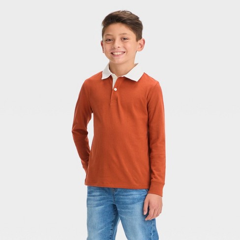Boys Long Sleeve Solid Polo Shirt Cat Jack Orange XS