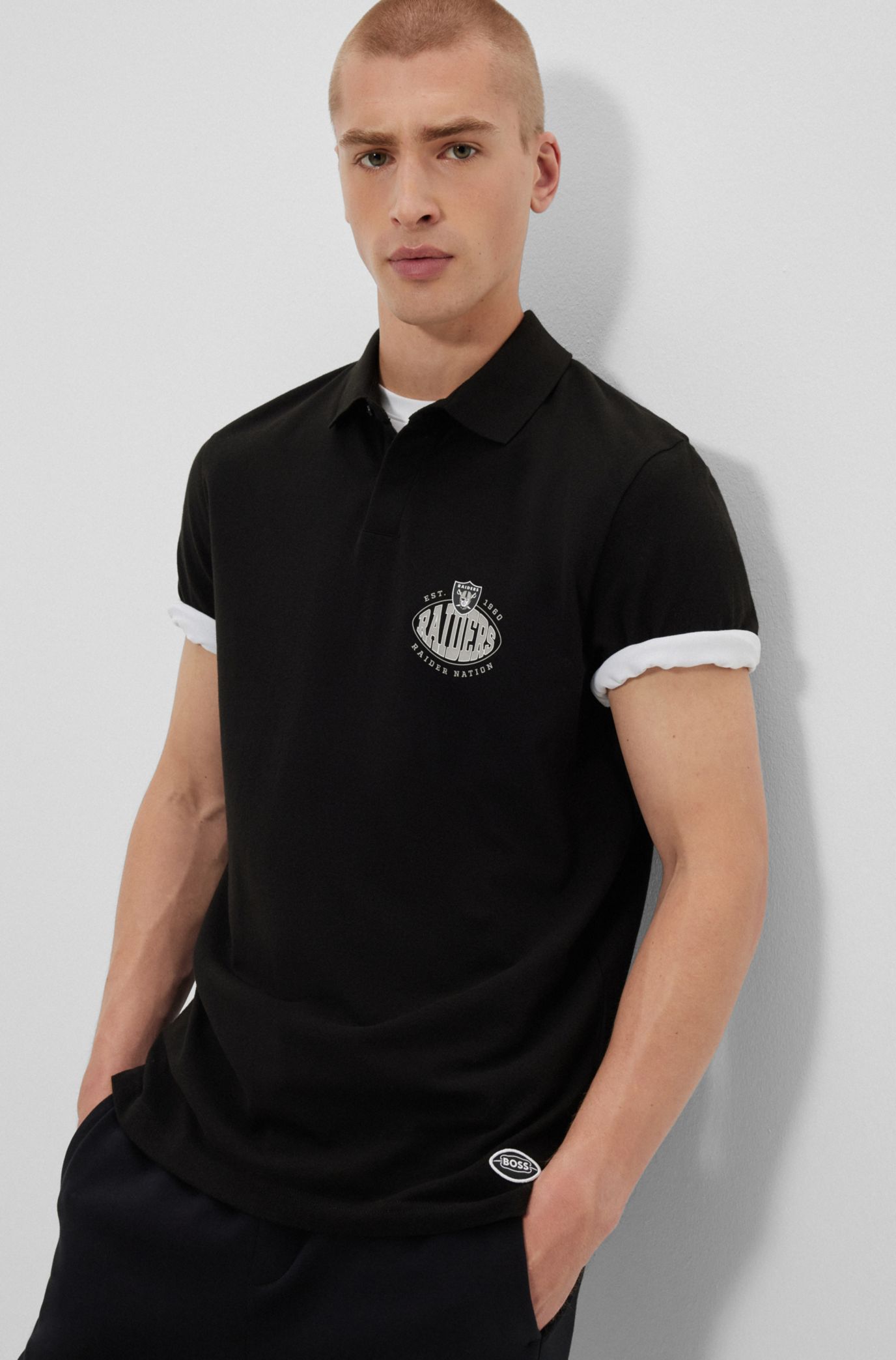 Raiders clearance polo shirt, BOSS x NFL cotton piqu polo shirt with collaborative branding clearance