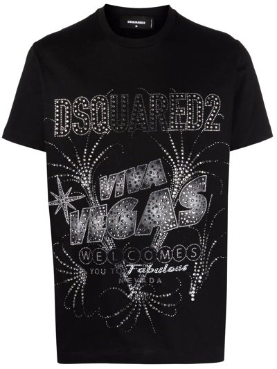 Tee clearance shirt dsquared, Dsquared2 Viva Vegas Black Embellished Cotton T shirt ModeSens clearance