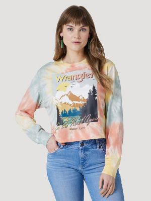 Women s Wrangler Retro Long Sleeve Tie Dye Cropped Graphic Tee in Tie Dye