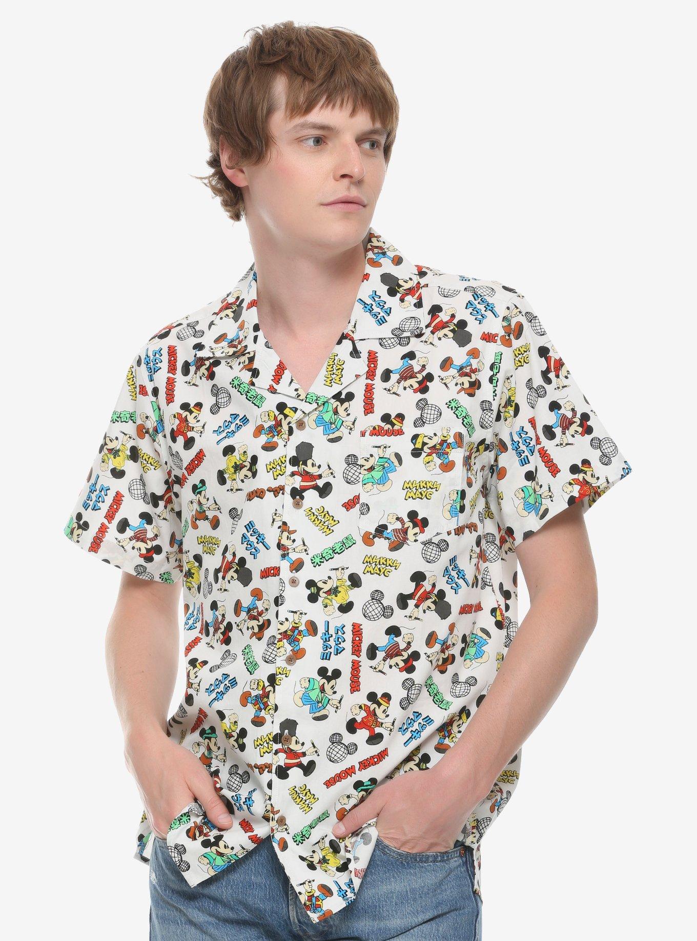 Mickey mouse button clearance down shirt, Disney s Mickey Mouse Men s Short Sleeve Button Down Camp Shirt clearance