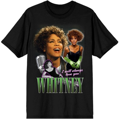 Whitney Houston I Will Always Love You Screen Print Men s Black T shirt Small