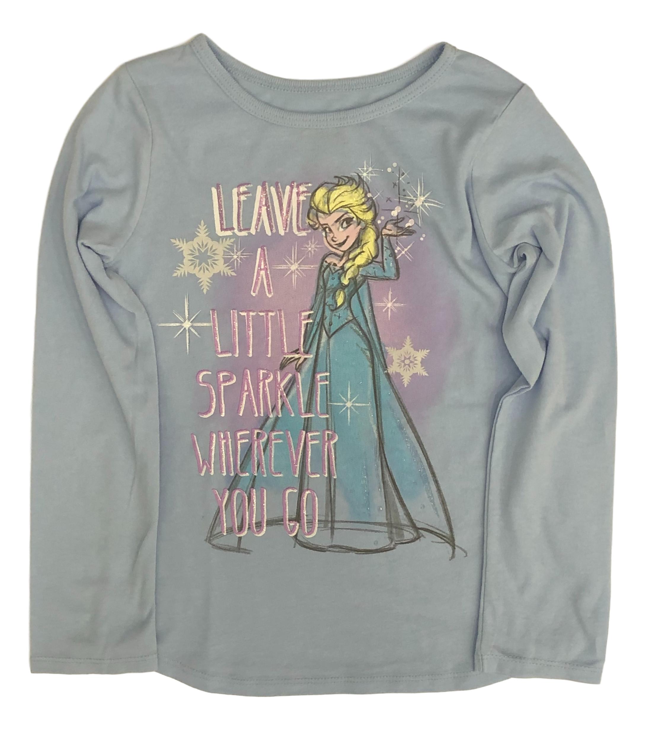 Disney Frozen Toddler Girls Long Blue Elsa Sparkle T Shirt Tee Shirt