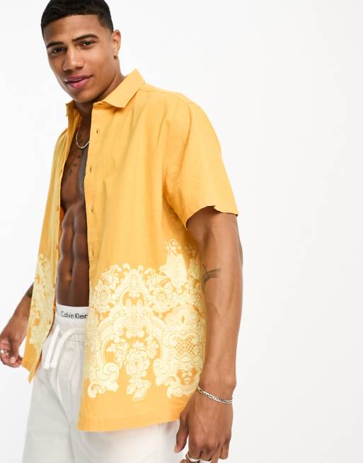ASOS DESIGN relaxed camp collar linen mix shirt in yellow with
