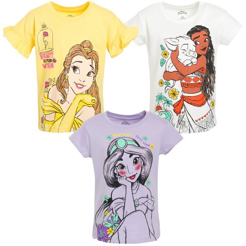 Disney Moana Jasmine Princess Belle Toddler Girls 3 Pack Graphic T Shirts purple white Yellow 4T