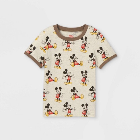 Toddler Girls Mickey Mouse Ringer Short Sleeve Graphic T Shirt Cream 2T