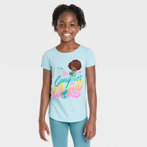 Girls Karma s World Short Sleeve Graphic T Shirt Aqua Blue XS