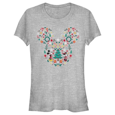 Juniors Womens Mickey Friends Christmas Silhouette T Shirt Athletic Heather Large