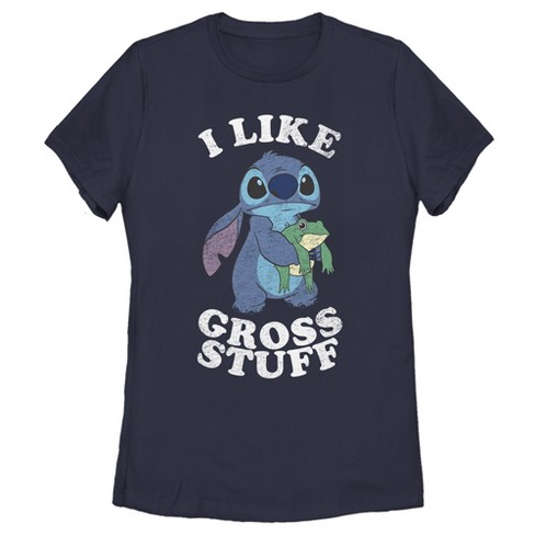 Women s Lilo Stitch I Like Gross Stuff Stitch Distressed T Shirt Navy Blue 2X Large